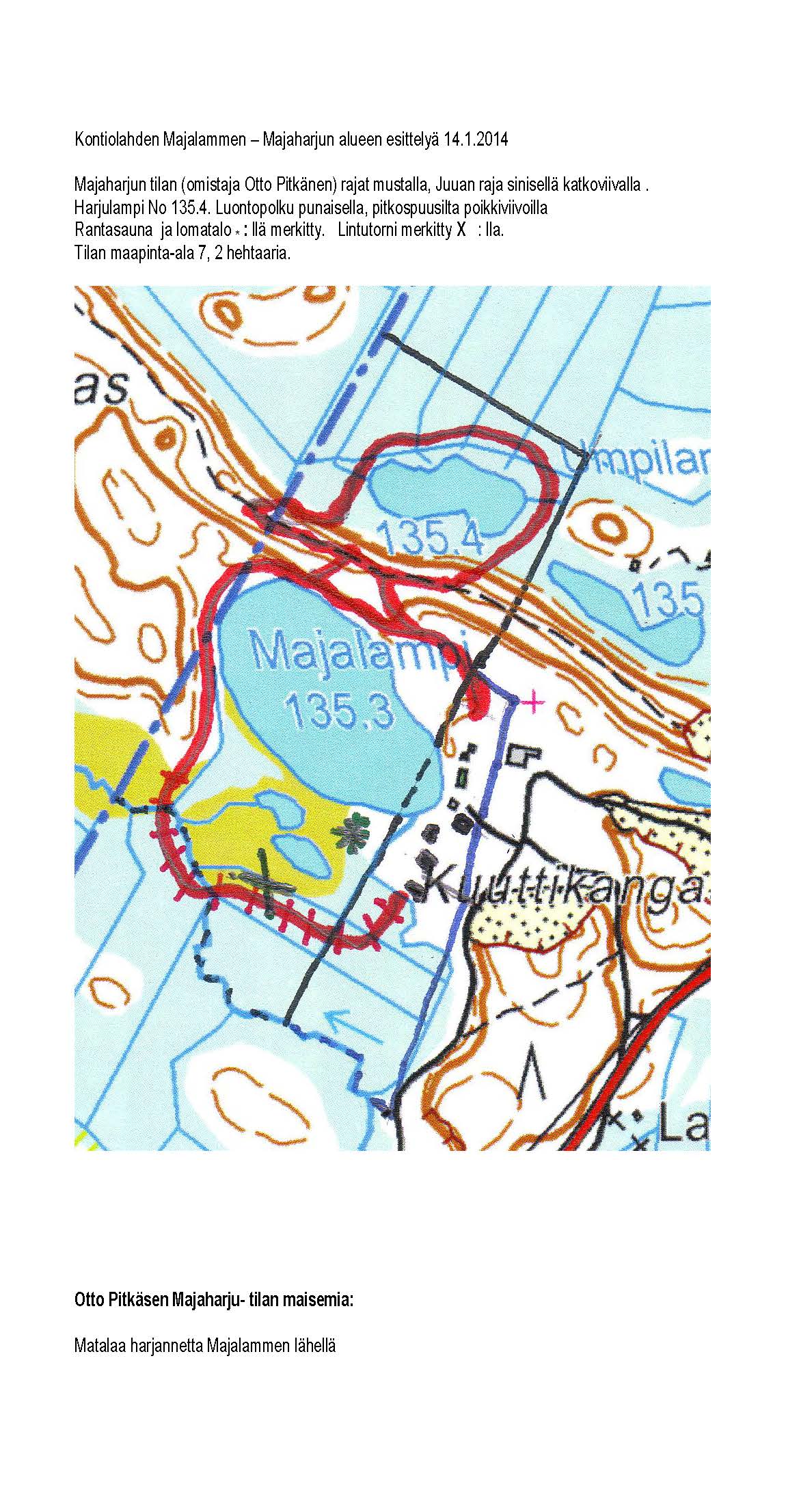 Majaharjun tila on maisemakohde, johon kuuluu kaksi lampea, kaunis männikköharju, ojittua suota ja suoaluetta. Tilan rakennukset sijaitsevat suohon pistävässä soramoreeniniemekkeessä ja rajajoen toisella puolen vierasmajan piha-alueella. Alueen maapinta-ala on 8,7 hehtaaria. Karttakuvassa punaisella on merkitty toista kilometriä pitkä luontopolku, jonka varrella on lintutorni.